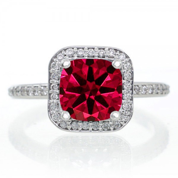 Princess Cut Ruby Classic Halo Engagement Ring. The vintage Ruby and diamond bridal wedding ring set for woman is now available at sale price for limited time. The order comes with free shipping. Give her the perfect Ruby and diamond engagement ring set.